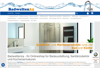 Bei Badwelten24 erhält man Qualitäts- und Markenprodukte für Bad und Küche: Küchen- und Badarmaturen, Duschkabinen, Fertigduschen, Duschsysteme, Dusch- und Badewannen, Duschzubehör, Badewannenaufsätze, Hebeanlagen, Badkeramik, WC-Sitze, Bad- und Wohnraumheizkörper, Ausgussbecken, Zubehör und vieles mehr.